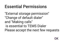 Tap OK to approve of the change and finish installing the TEMS Dialer app on this device.